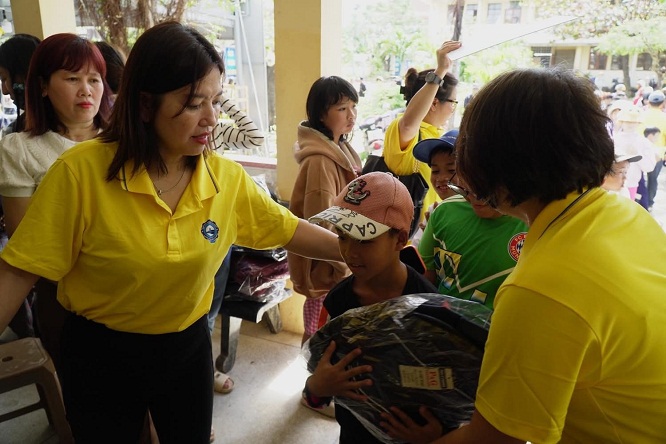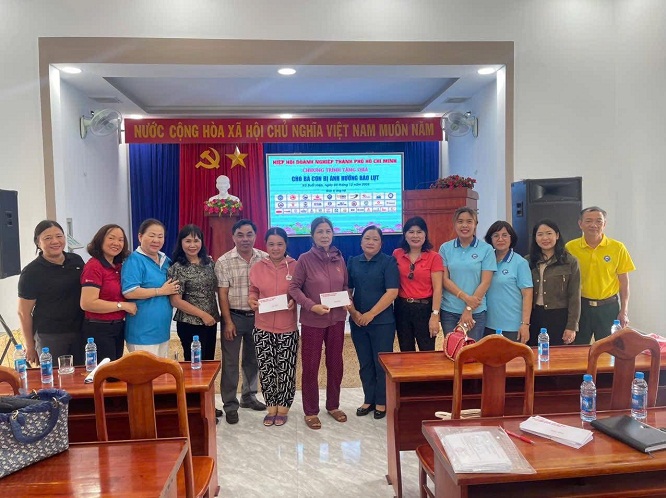 Tại xã Hòa Thịnh, đoàn trao tặng 150 triệu đồng cho 150 hộ dân chịu ảnh hưởng nặng bão lụt, giúp bà con có thêm điều kiện ổn định cuộc sống trước mắt; Tại trường Tiểu học Hoà Thịnh, đoàn dành 160 triệu đồng hỗ trợ giáo viên và tặng ba lô, sách vở, quà cho học sinh, góp phần giúp nhà trường sớm khôi phục hoạt động dạy và học; Song song đó, HUBA đã trao 162 triệu đồng cho 25 hộ gia đình có thân nhân qua đời trong đợt lũ vừa qua, nhằm chia sẻ mất mát và động viên tinh thần để các gia đình sớm vượt qua khó khăn. Những phần quà được trao tận tay bà con trong không khí ấm áp nghĩa tình, thể hiện sự đồng hành sâu sắc của cộng đồng doanh nghiệp TP.HCM đối với người dân vùng thiên tai.