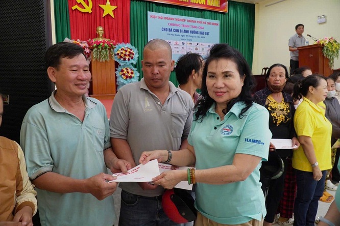 Tiếp tục chương trình, ngày 2,3/12, đoàn Hiệp hội Doanh nghiệp TP. Hồ Chí Minh đến thăm và tặng 500 triệu đồng tiền mặt (mỗi hộ 1 triệu đồng tiền mặt) cho bà con tỉnh Khánh Hòa bị ảnh hưởng bão lũ. Trong đó, tặng 200 phần quà cho người dân Tổ dân phố Ngọc Hội 1 (phường Tây Nha Trang); tặng 150 phần quà cho người dân các tổ dân phố: Thái Thông 1, Thái Thông 2, Thủy Tú, Vĩnh Xuân, Đất Lành (phường Nam Nha Trang); tặng 150 phần quà cho người dân xã Suối Hiệp chịu thiệt hại do mưa lũ. Tại các nơi đến thăm, các thành viên của hiệp hội đã chia sẻ những khó khăn, mất mát; động viên người dân các địa phương sớm vượt qua khó khăn, ổn định lại cuộc sống.