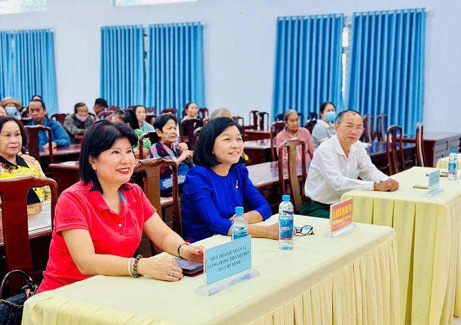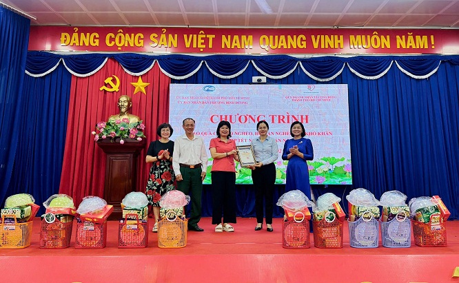 Đến trao quà về phía Hiệp hội Doanh nghiệp Thành phố (HUBA) và Quỹ Doanh nhân vì cộng đồng có Bà Lã Thị Lan - Phó Chủ tịch Hiệp hội Doanh nghiệp Thành phố, Chủ tịch Quỹ DNVCĐ; Bà Cao Thị Nhung - Phó Giám đốc TT Quỹ DNVCĐ; Ông Nguyễn Chính Hải - Ủy viên BCH HUBA, Giám đốc KS Hoàng Cung, đại diện cho các đơn vị tài trợ. Về phía chính quyền có Bà Từ Thị Anh Đào - Phó Chủ tịch Phường Bình Dương, TP.HCM; Bà Nguyễn Thị Hồng Yến - Trưởng phòng Kinh tế hạ tầng đô thị Phường Bình Dương.